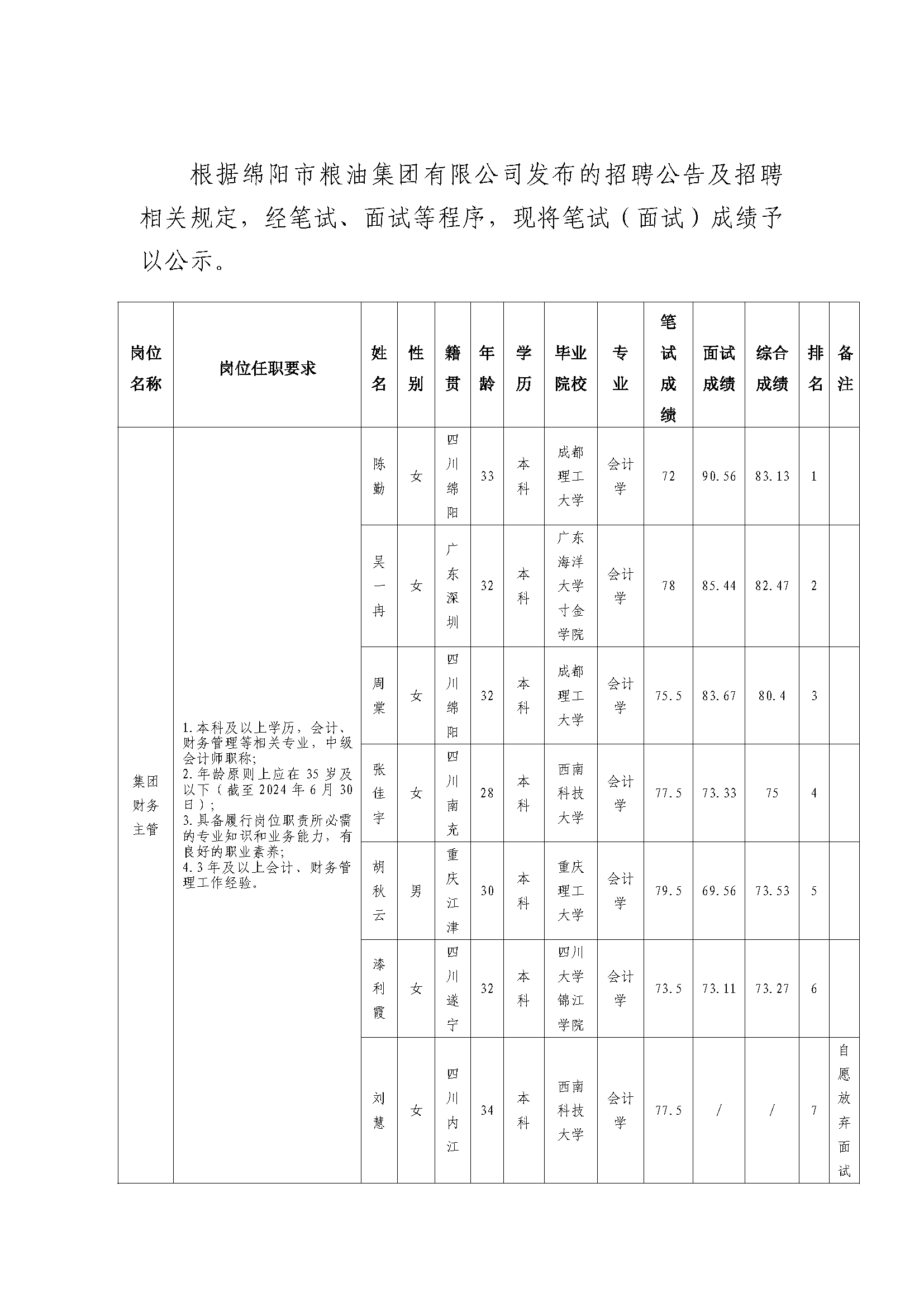 中欧手机网页版登录入口关于招聘集团财务主管等岗位(2024年第二批)测试 成绩的公示