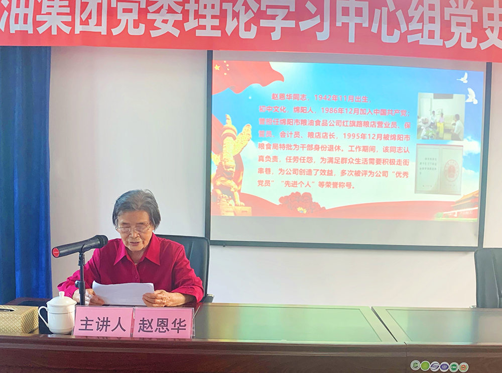 原市粮油食品公司员工、曾荣获国务院授予的“全国劳动模范”称号的赵恩华老同志,1986年加入中国共产党,现已年近八旬。在原粮油食品公司工作期间,赵恩华认真负责,任劳任怨,为满足群众生活需要,坚持扎根一线,积极走街串巷,为公司创造了效益,多次被评为公司“优秀党员”、“先进个人”等荣誉称号。1970年起,她还毅然扛起常年照顾、资助身边孤寡老人的重担,直到老人们离世,真真实实演绎了一段至善至美的人间大爱,时至今日她的故事依然在当地街头巷尾广为传诵。党课中,她深情讲述了自己与中国共产党的“难忘故事”,分享了自己在做好粮油一线工作的同时,还坚持数十年如亲生儿女一般悉心照顾孤寡老人的感人善举。她认为,她不过是做了一件共产党员该为人民群众做的事而已,是党的教导让她懂得了人活着不单纯是为了自己,而应该是通过自己的劳动让人民群众生活得更好。