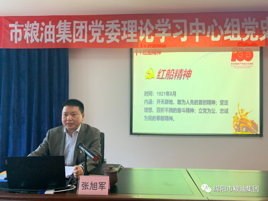 为深入贯彻落实党中央、省、市和市国资委党委关于党史学习教育的要求,推动党史学习教育在市粮油集团走深走实,4月23日,根据集团党委党史学习教育工作安排,集团党委书记、董事长张旭军率先开讲党史学习教育专题党课,带领全体党员全面深入学习习近平总书记关于党史学习教育重要讲话精神,学习中国共产党百年历史,学习优秀共产党员先进事迹,切实做到学党史、悟思想、办实事、开新局,以昂扬姿态奋力开启集团高质量发展新征程,以优异业绩迎接中国共产党建党100周年。集团党委班子成员、所属各党支部委员、直属支部全体党员共计40余人参加会议。