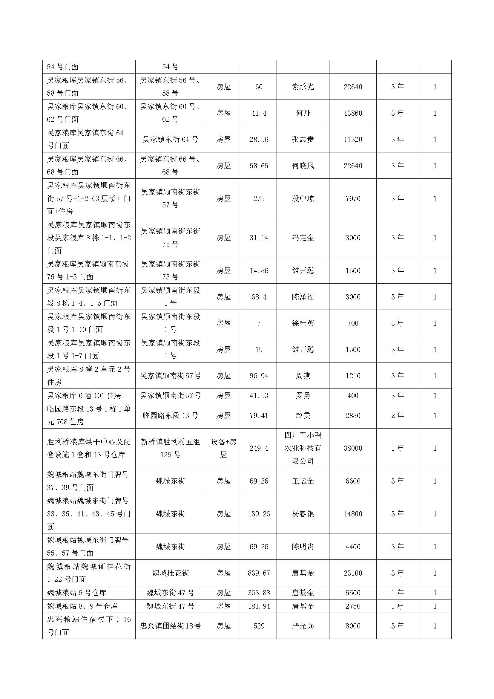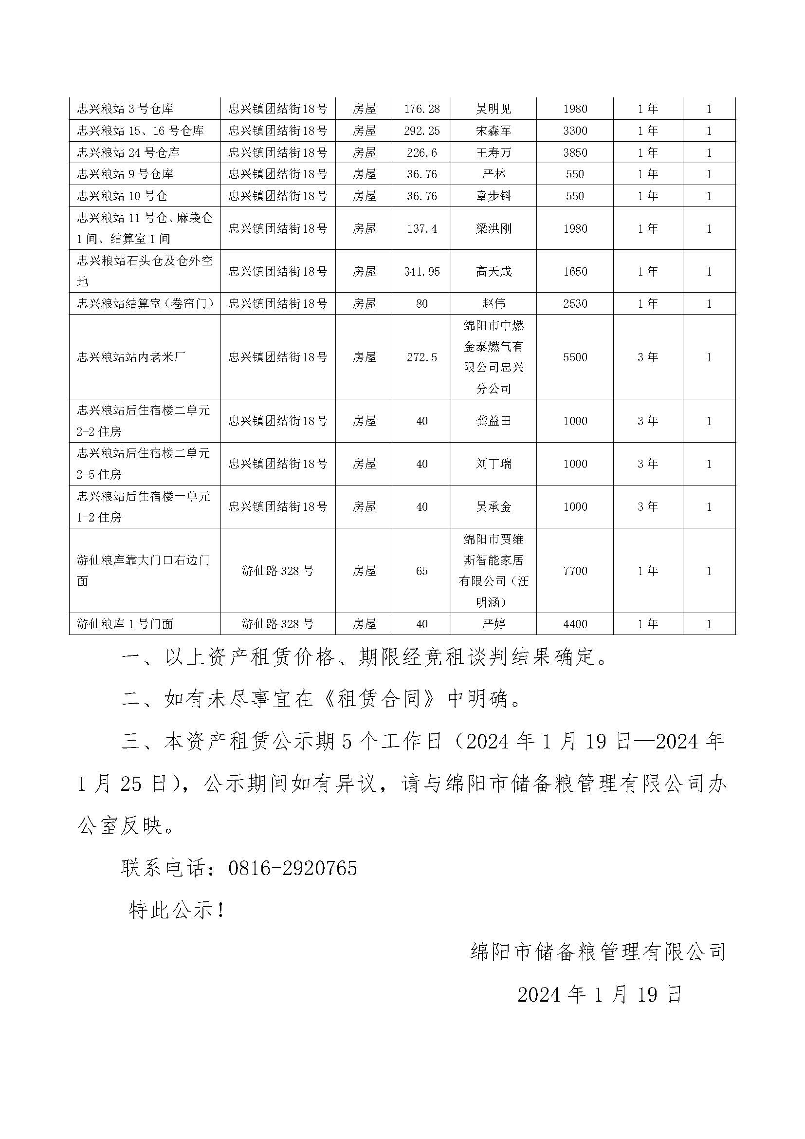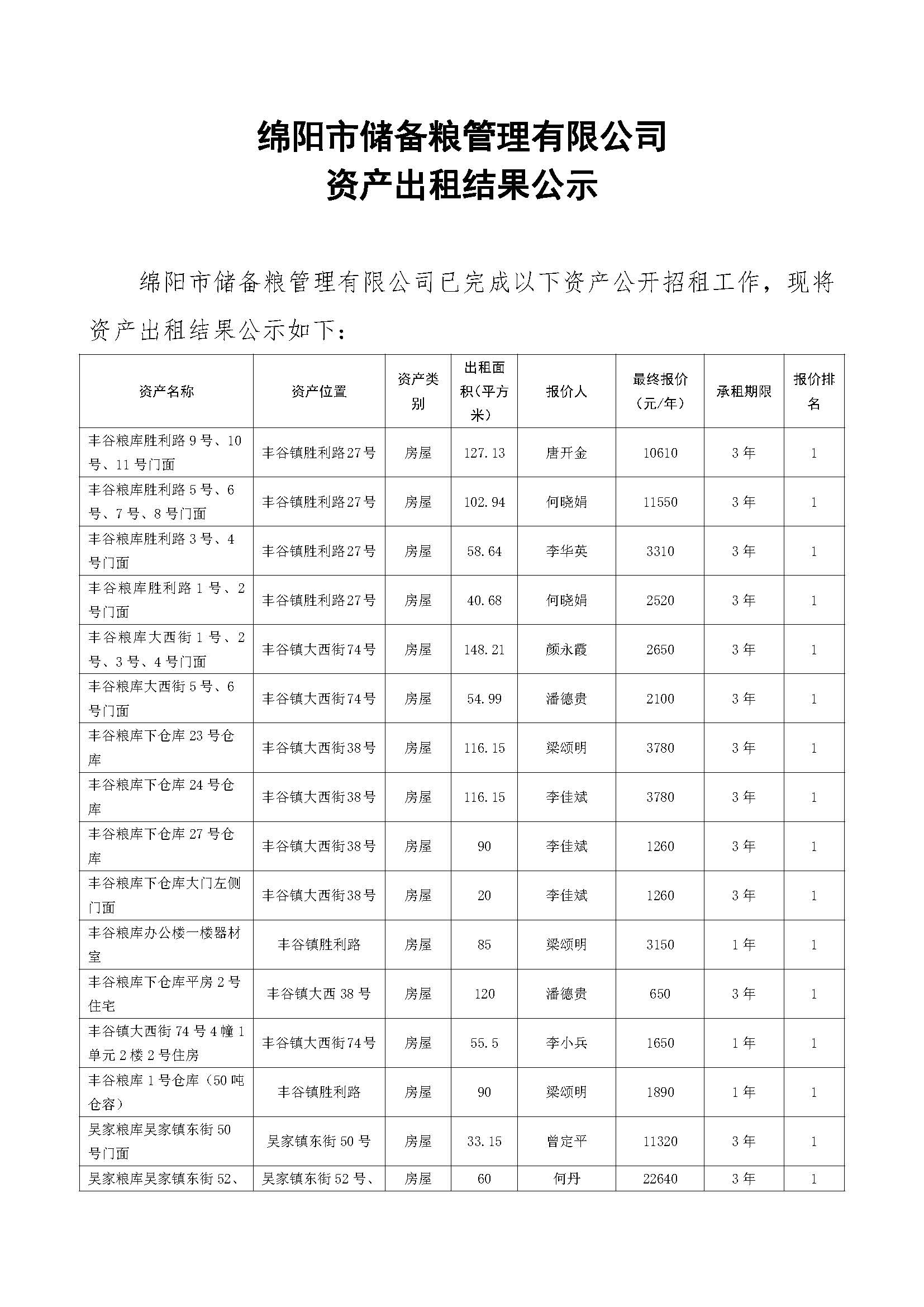 绵阳市储备粮管理有限公司资产出租结果公示