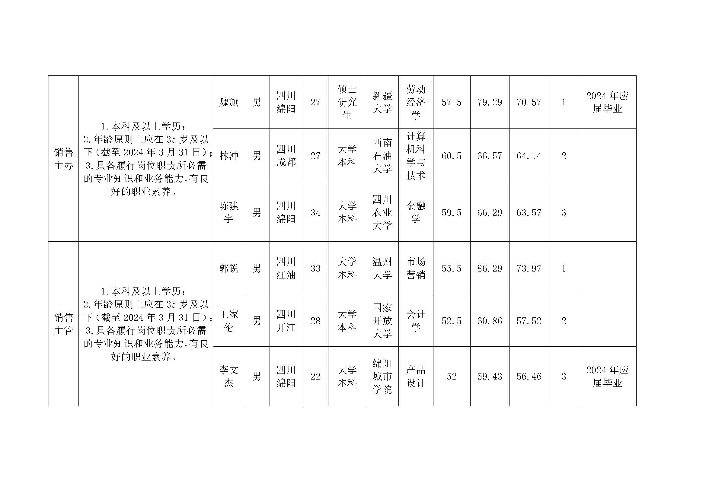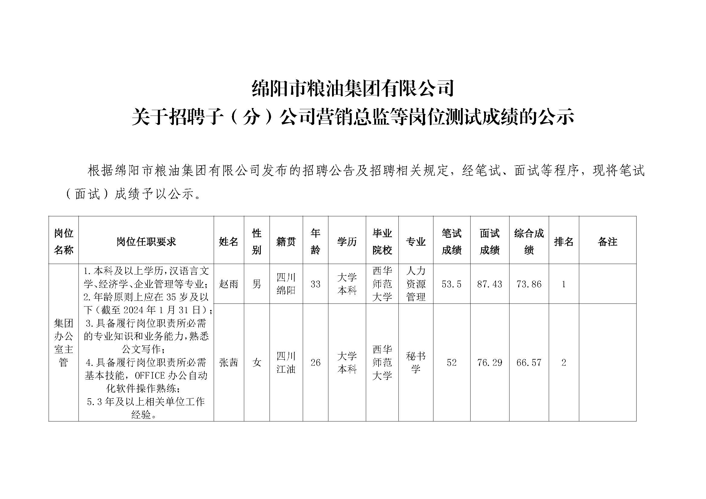 中欧手机网页版登录入口关于招聘子(分)公司营销总监等岗位测试成绩的公示