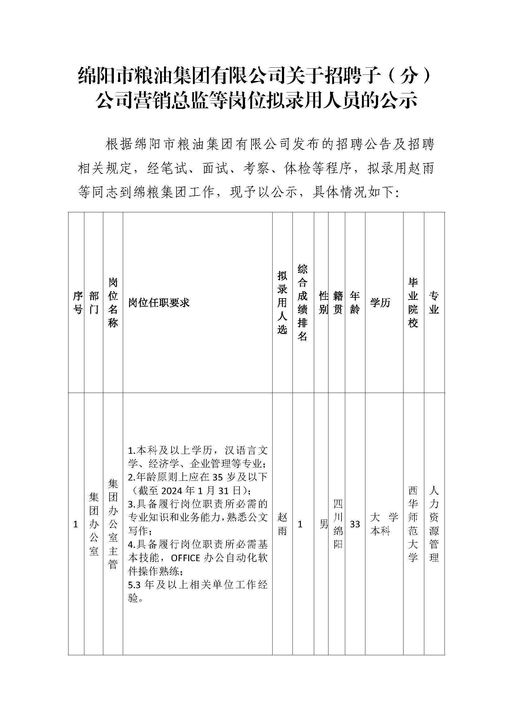 中欧手机网页版登录入口关于招聘子(分)公司营销总监等岗位拟录用人员的公示