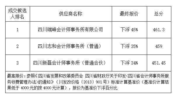 根据中欧手机网页版登录入口2024-2025年项目竣工财务决算审计服务(第二次)(采购编号:MLJT(2024)020-1)比选文件要求,评审小组于2024年8月15日15:00在公司五楼会议室对2024-2025年项目竣工财务决算审计服务进行比选。至递交比选文件截止时间,共8家单位递交比选响应文件,其中通过符合性审查的单位7家,未通过符合性审查的单位1家。评审小组对通过符合性审查的竞标人进行比选,以综合评分法从高到低推荐一至三名成交候选人。