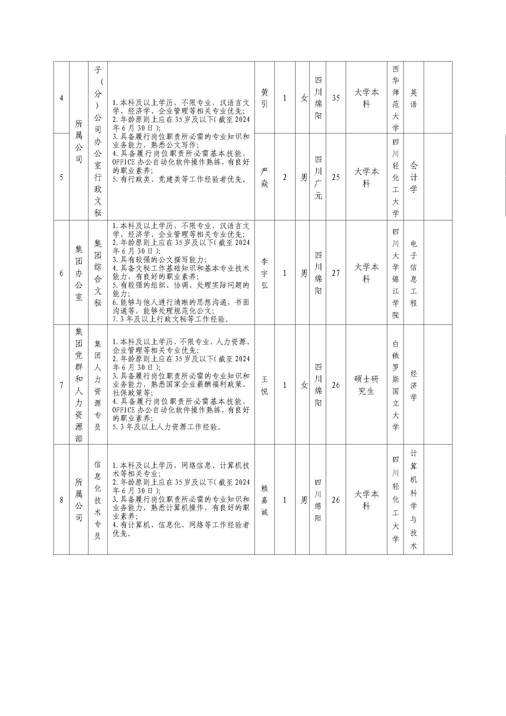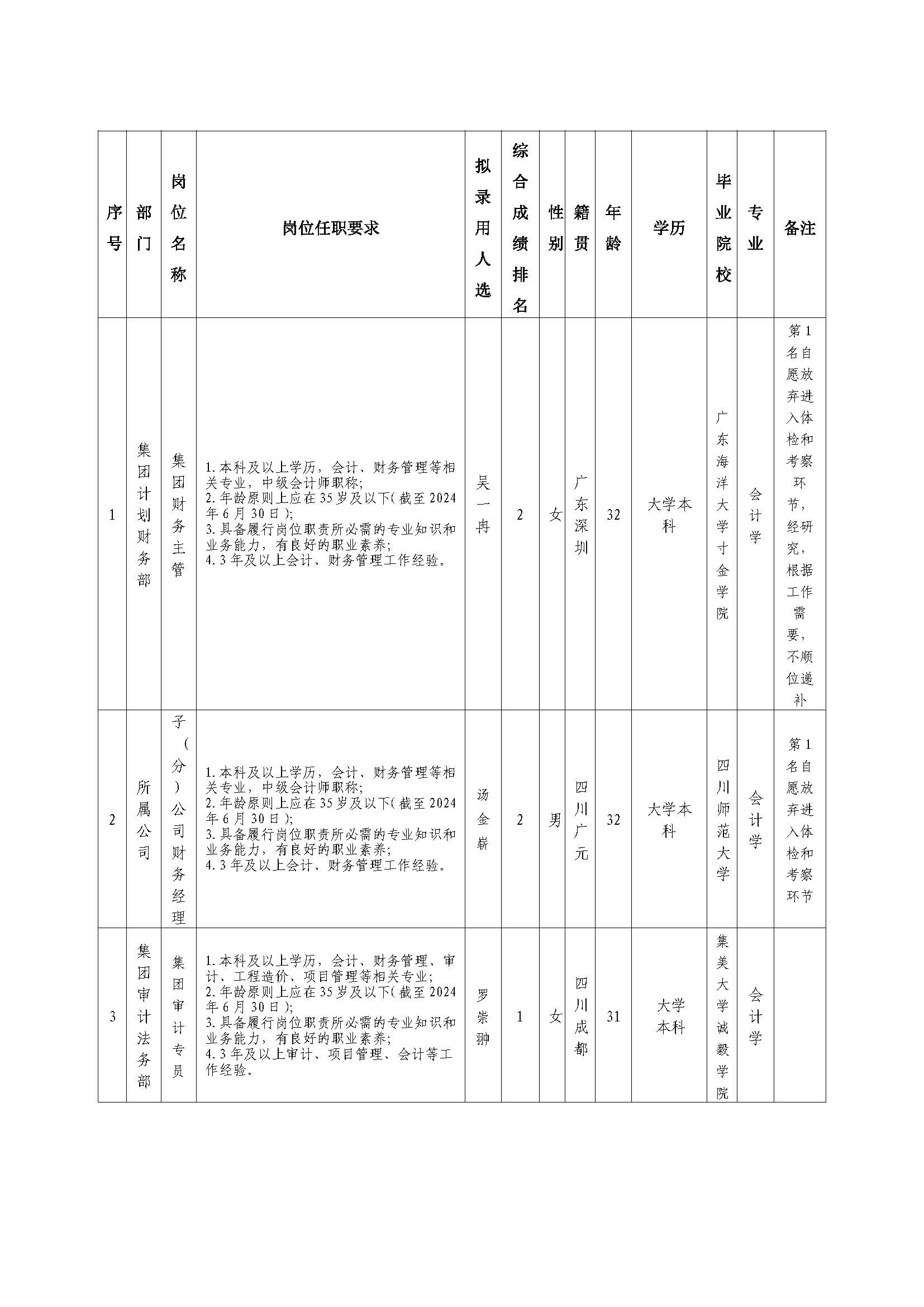 根据中欧手机网页版登录入口发布的招聘公告及招聘相关规定,经笔试、面试、考察、体检等程序,拟录用吴一冉等同志到绵粮集团工作,现予以公示,具体情况如下: