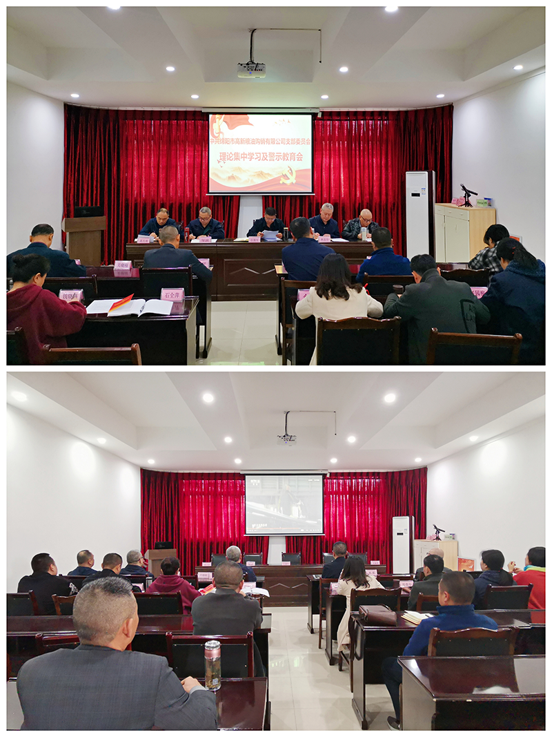 3月22日下午,市高新粮油购销有限公司召开支部理论集中学习暨警示教育会,公司全体党员、入党积极分子、非党员中层干部20余人参会。