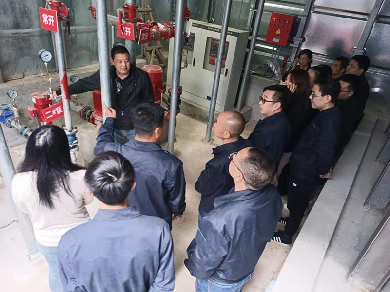 以贴近实战、注重实效为原则,本次培训还邀请了专业的安全员进行现场教学。一方面,对消防泵组电气控制柜、湿式、干式自动喷水灭火系统的阀门、管道、水流指示器、报警阀组和试验装置等进行了一一的介绍;另一方面,对消防水设施的操作进行了现场演练,关于如何切换湿式、干式自动喷水灭火系统、如何判断电气控制柜的工作状态,以及后续如何保养等进行了详细的讲解。