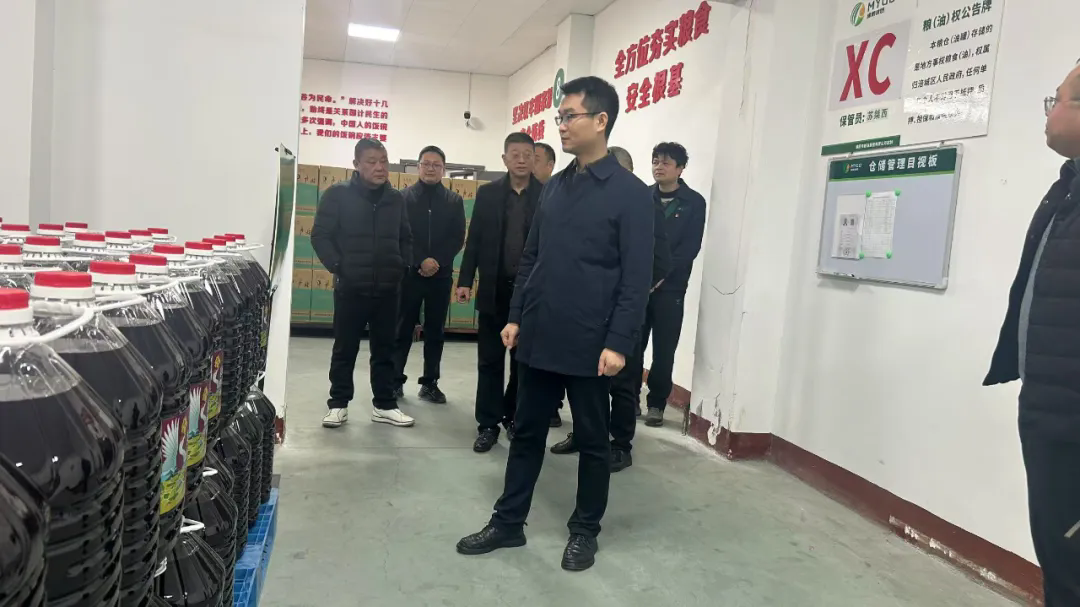 在检查过程中,张旭军一行查验各储备点大米、面粉等原粮及成品粮的数量、品种等,详细询问、翻阅资料,仔细了解各品类的储备、轮换和日常管理情况。他强调,作为承担区域性粮油储备管理的市属公益类国企,要有政治敏锐、责任担当,要不折不扣落实好市委、市政府关于粮油供应和应急物资保障有关工作部署,紧盯关键时间、抓住关键环节,特别是在春节这样的传统佳节,必须确保储备充足、质量良好,随时能够调得出、用得上。梁帮浩一行对菜籽油、花生油等食用油在储情况和企业在节日期间的生产安排、原料供应以及产品销售等方面的情况进行了深入了解,叮嘱企业要严格把控产品质量关,加强对原材料采购、生产加工、产品出厂等各个环节的质量检测,确保广大消费者吃上安全、放心的粮油产品。