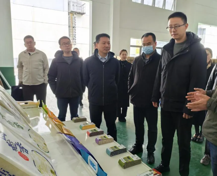 考察组一行深入集团所属市高新粮油购销有限公司,重点考察了大米(杂粮)智能化分装车间和标准化储粮仓,详细了解从原料筛选、全自动灌装到质量追溯的数字化生产流程,双方就原料品控、生产能力、仓储管理等方面进行现场交流。