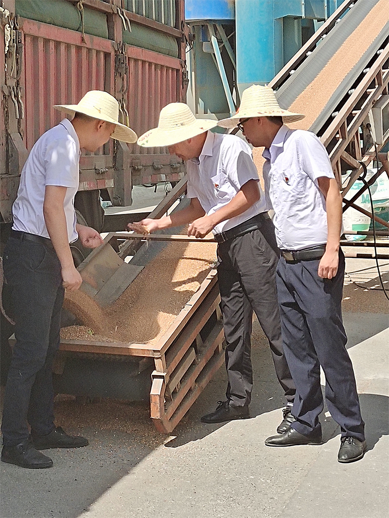 一是发挥党员模范先锋作用。今年夏粮收购工作中,哪里有粮,哪里就会飘扬起党员先锋队队旗;哪里有困难,哪里就会有党员先锋队队员服务的身影;他们在现场不畏酷暑、不分早晚地为售粮群众做好服务工作,充分展示新时期粮食行业的良好形象。二是严格执行收购政策。实行收购价格、收购质量标准、收粮人员名单公示上墙;服务时间、服务内容、入库仓点、价格质量标准公开,自觉接受粮农及社会监督。加强职工廉政教育,严格执行廉洁收粮守则,执行好粮食收购政策。三是把握好入库粮质。强化关口前移,严格把控现场质量检验,规范粮食扦样、检验程序,不人为压级压价或抬级抬价,提升入库粮食“质价相符率”。