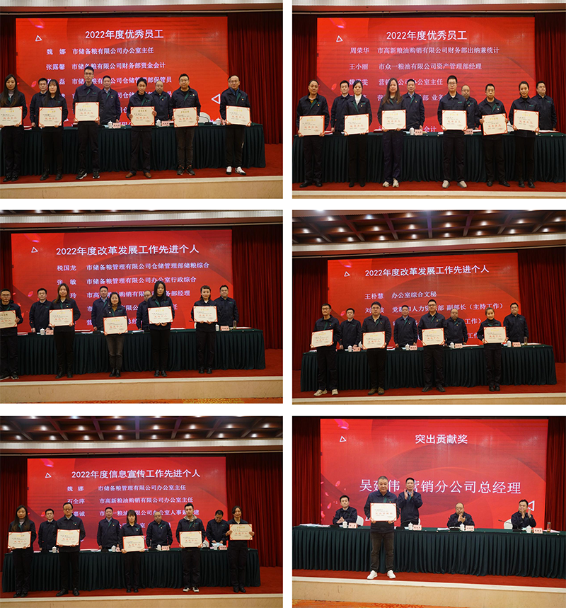 为总结回顾2022年工作成绩,表彰工作中涌现出来的先进集体和个人,全面部署2023年工作任务,凝聚发展共识,汇聚奋进力量,2月28日,市粮油集团召开2022年度总结表彰暨2023年工作部署大会,集团党委书记、董事长张旭军出席会议并讲话。会议由集团党委副书记、工会主席涂勇主持,集团班子成员,各子(分)公司班子、支委成员、中层管理人员,集团本部职工及集团成立以来新入职的员工,受到表彰的先进集体和先进个人共90余人参加会议。