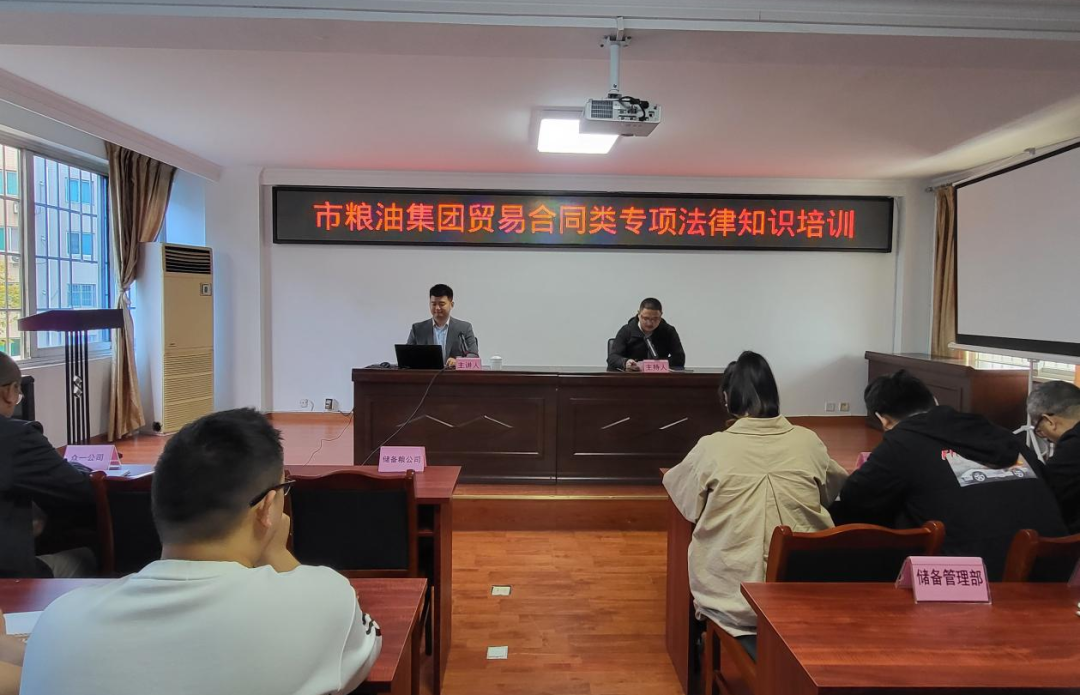 为深入贯彻习近平法治思想,提高集团公司依法治企能力,增强职工的业务素质和专业能力,确保集团公司合规开展贸易活动,10月20日,市粮油集团根据粮油贸易业务的实际需要,举办了贸易合同类专项法律知识培训,集团本部及下属各子(分)公司共40余名职工参与培训。