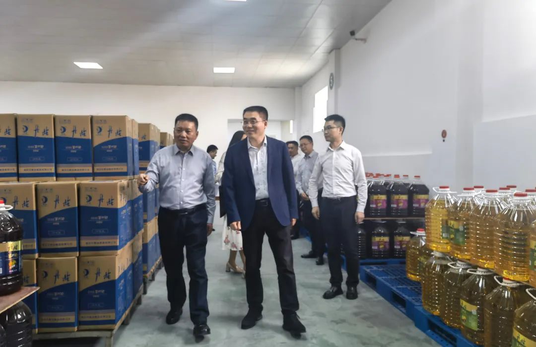 刘福龙一行深入公司粮油储备仓库、油脂加工车间、产品展示区,详细了解油脂生产、储备、管理、市场供应以及自有品牌建设等情况。